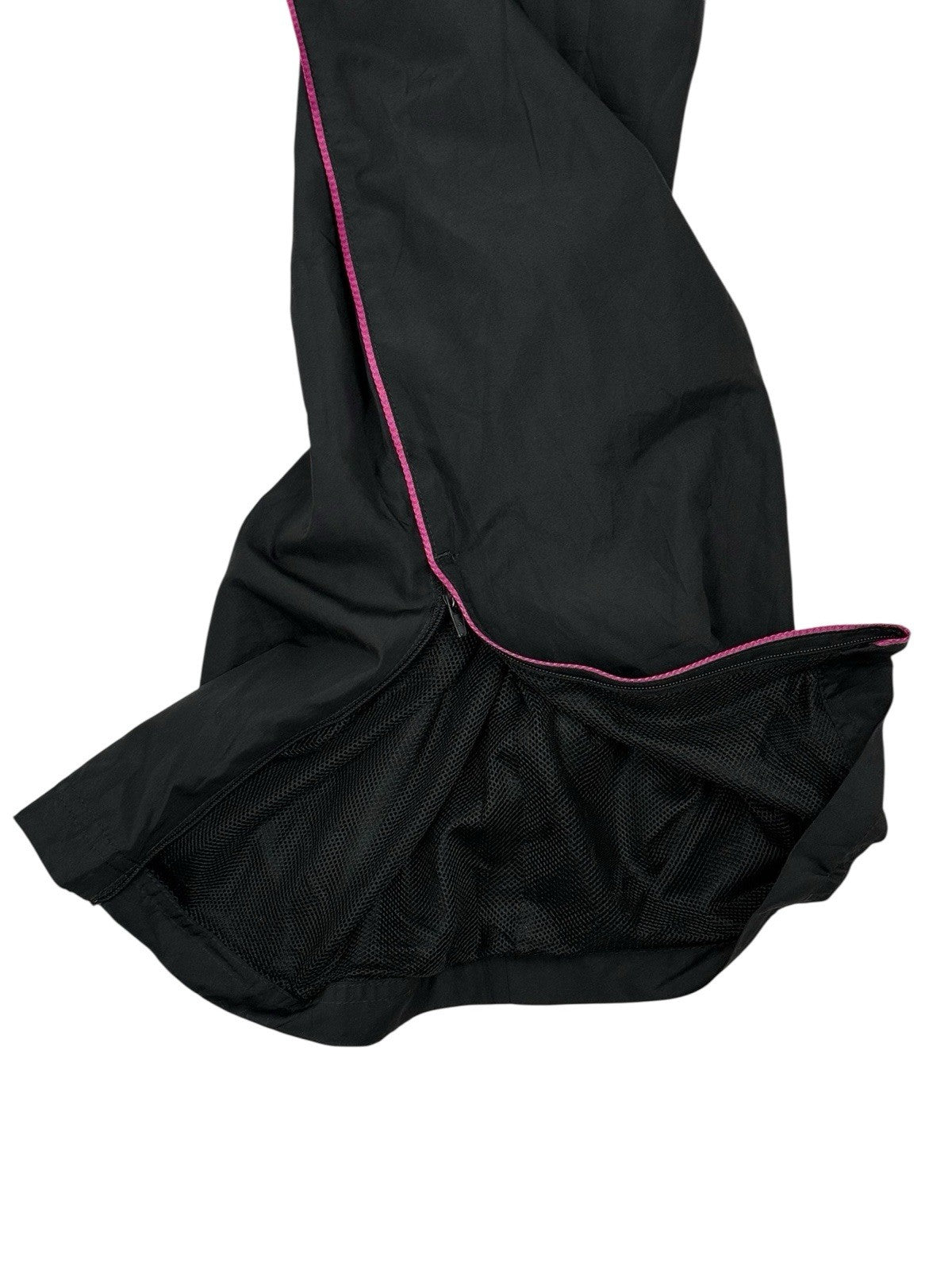 Adidas Black Retro Tracksuit Bottoms, Women's Size 14 (Medium), Contrast Purple Trim, Printed Logo, Pockets, Drawstring Waist, Mesh Lining, Ankle Zips