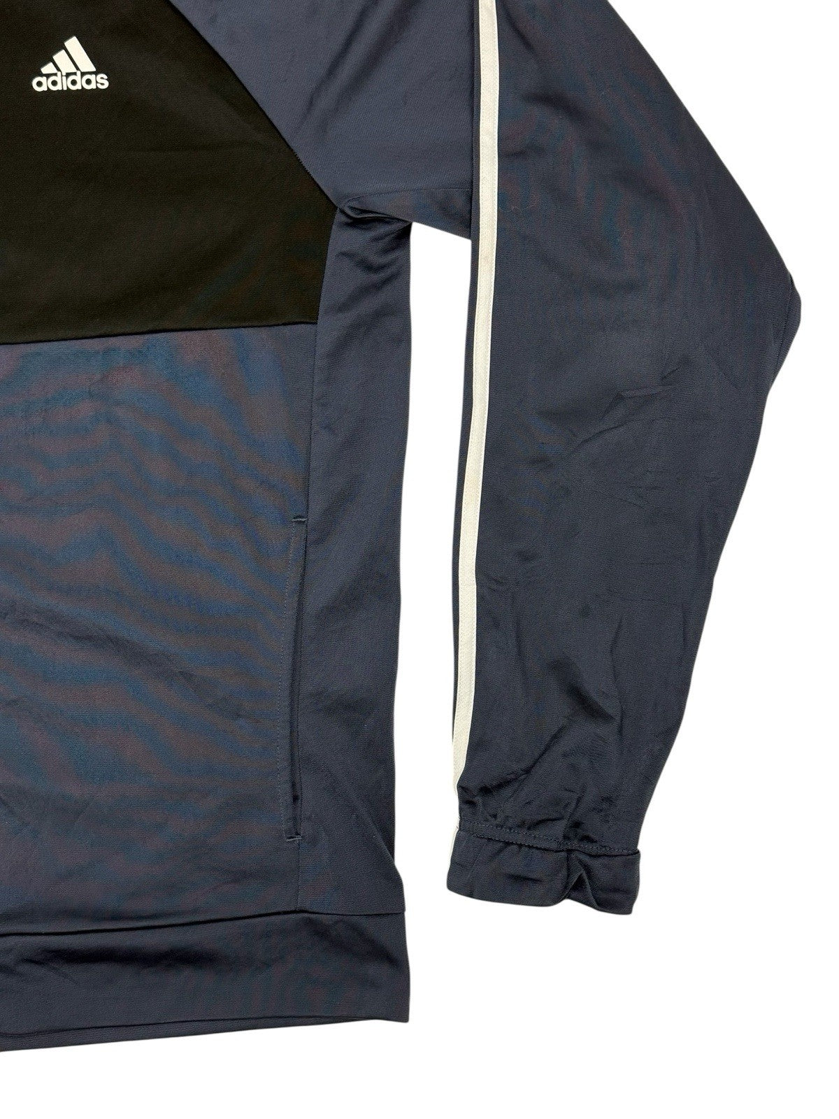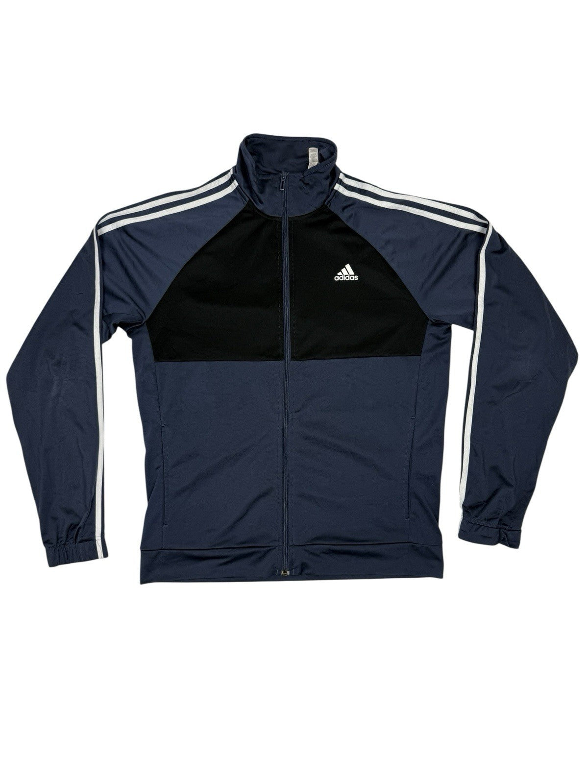 Adidas Blue/Black Full Zip Through Polyester Track Jacket Size Large, Pockets, Collar, Printed Badge, Striped Sleeves