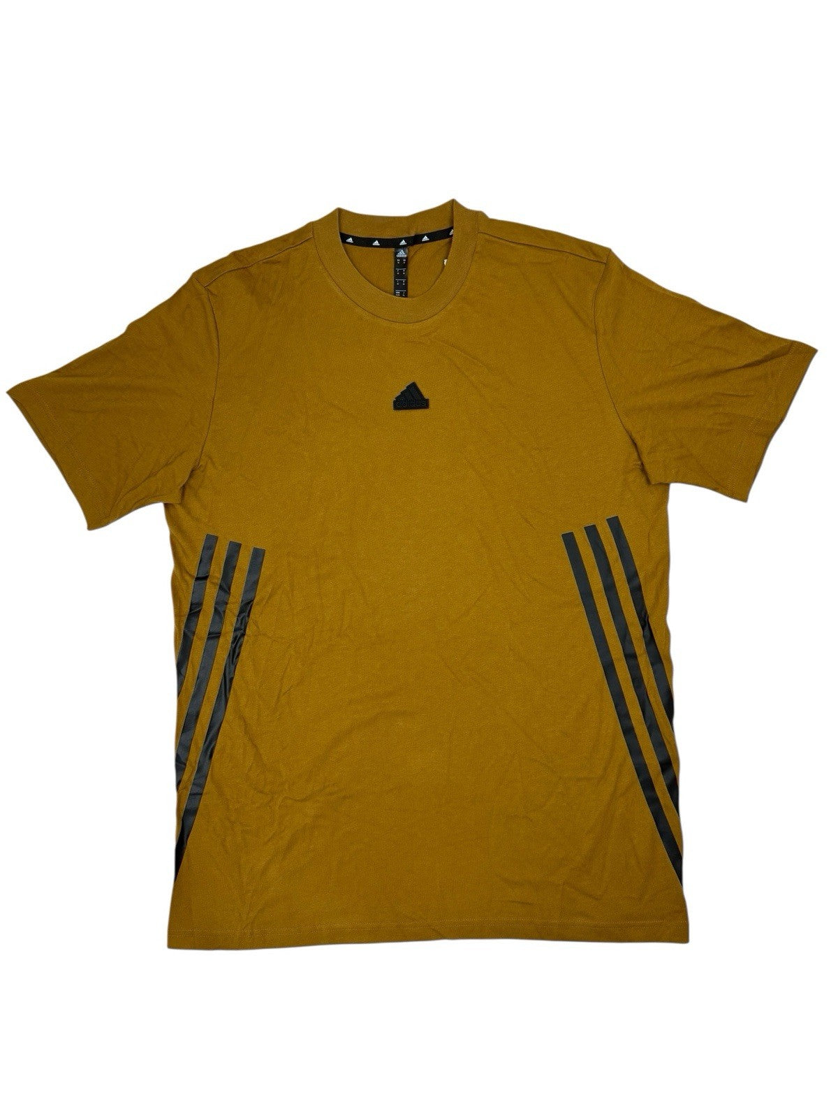 Adidas Brown Future Icon 3S Striped Relaxed Fit T-Shirt Top, Centre Logo Badge, Striped Print Design, Long Fit. Brand New With Tags.