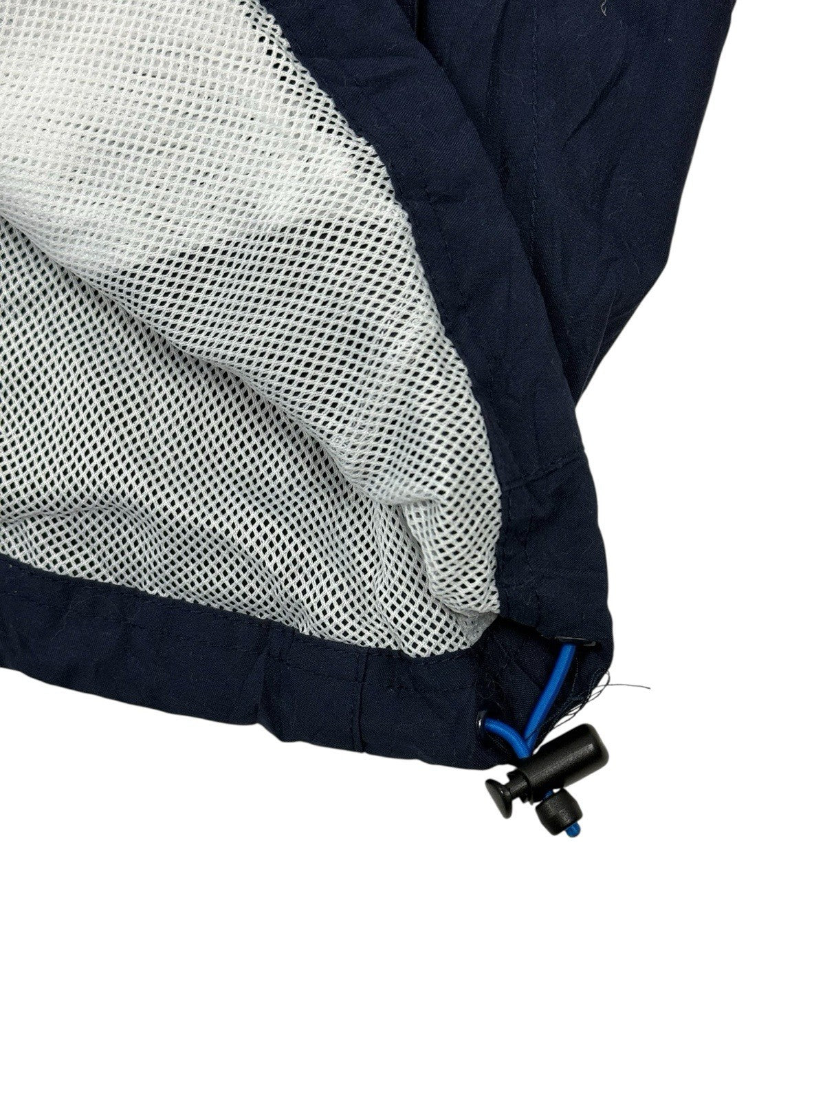 Champion Dark Blue Vintage Retro Y2K Full Zip Through Polyester Track Jacket, High Collar, Velcro Sleeve Cuff, Drawstring Waist, Mesh Lining, Reflective Trim, Embroidered Logo