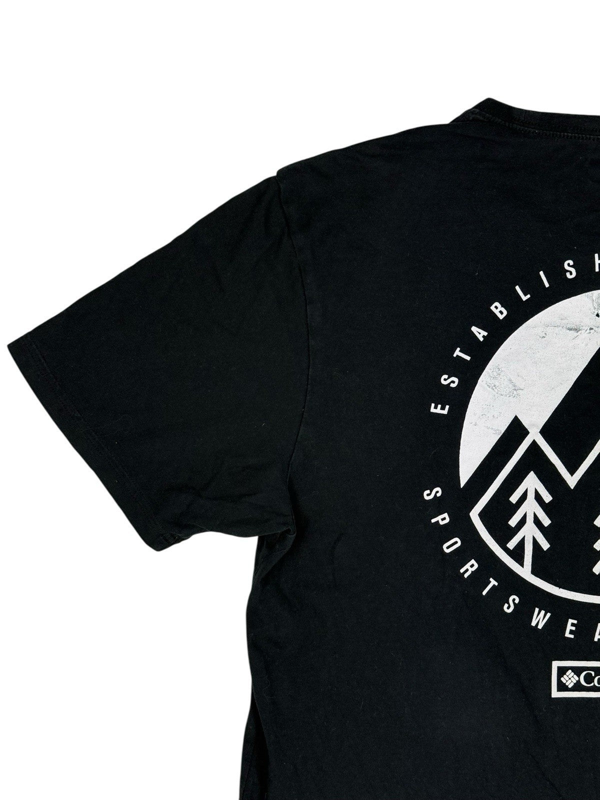 Columbia Sportswear Company Black Printed Logo T-Shirt Size Large, 100% Cotton, Short Sleeve