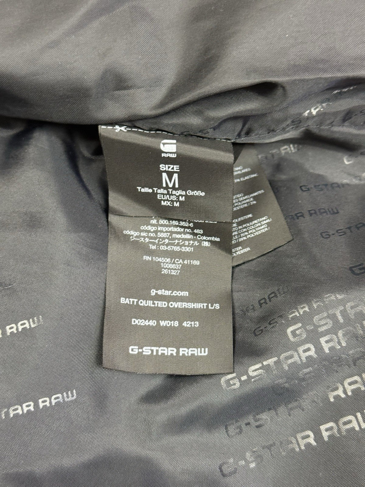 G-Star Raw Dark Blue Quilted Full Zip Through Bomber Jacket Size Medium, Button Closure Pockets, Metal Logo, Printed Sleeve Logo and Sleeve Zip Pocket