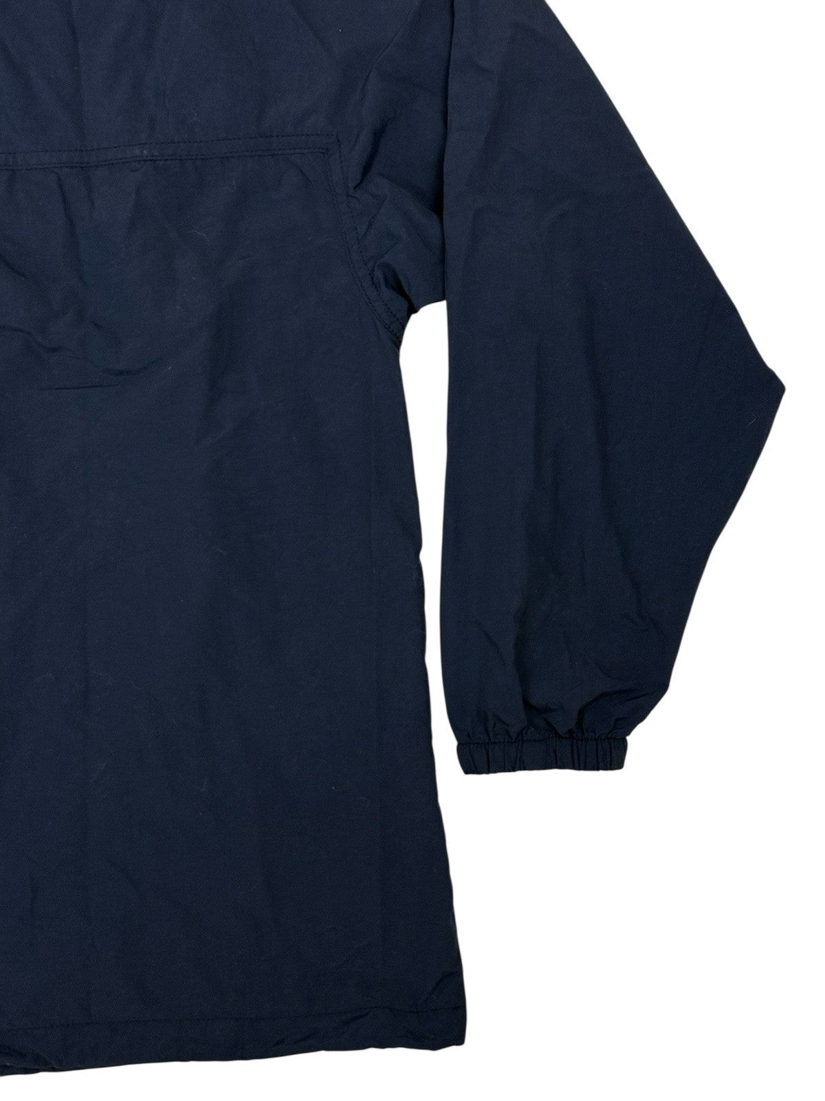 L.L. Bean Dark Blue Vintage Retro 90's Y2K Full Zip Through Hooded Nylon Jacket, Women's Medium, Regular Fit, Drawstring Hood and Waist, Zip Pockets, Retro Embroidered Logo, Made in USA Elastic Cuff Hem on Sleeve