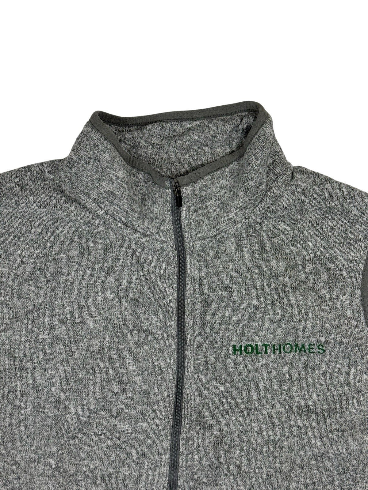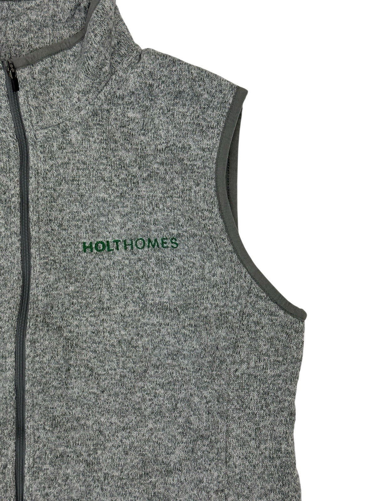 L.L. Bean Grey Knit Full Zip Through Sleeveless Gillet Body Warmer Vest, Size Medium, Holt Homes Embroidered Logo, High Neck, Embroidered Logo Badge, Zip Pockets