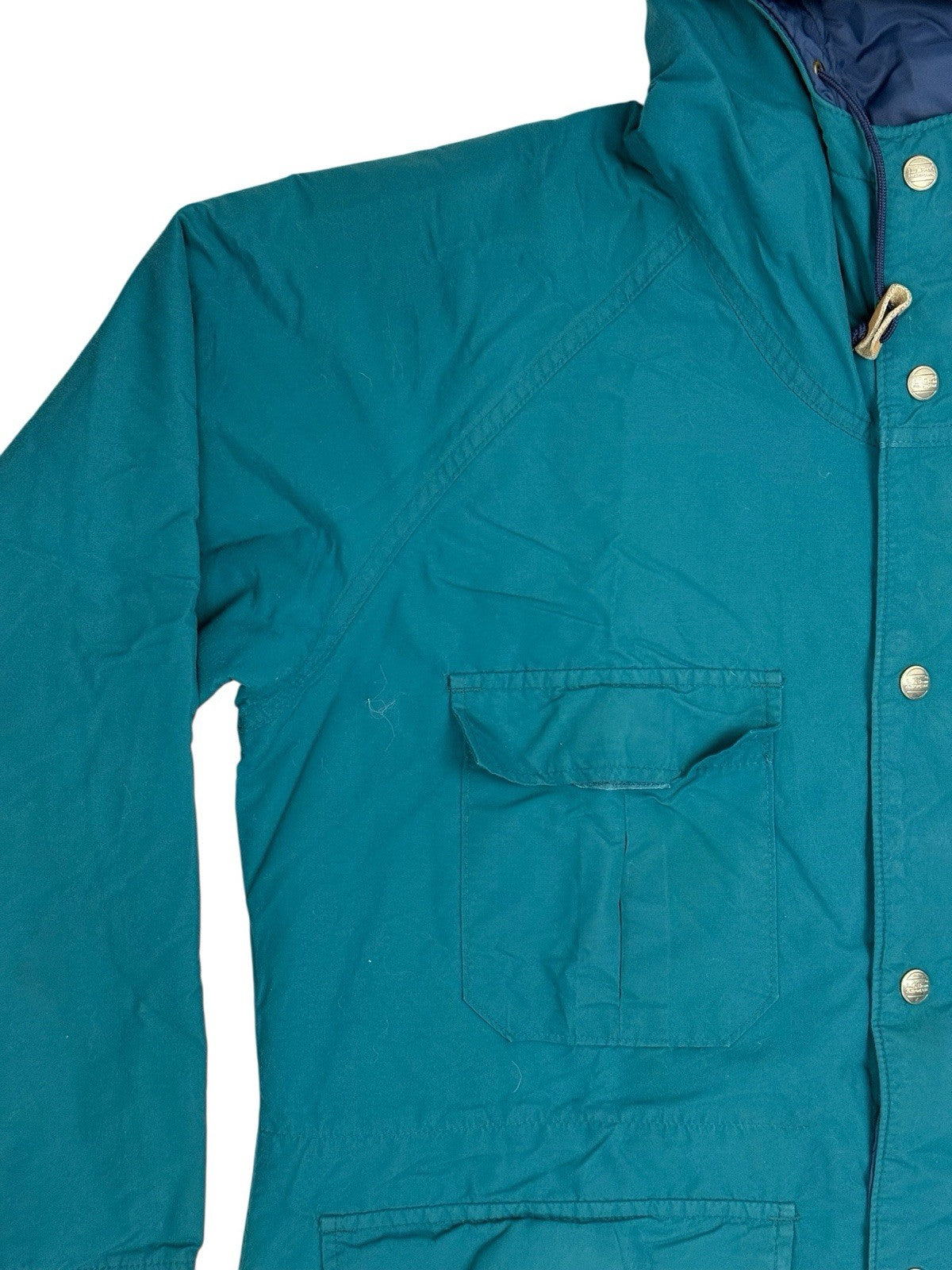 L.L. Bean Vintage Green 'Baxter State Parka' Full Zip Through Insulated Hooded Jacket, Drawstring Hood and Waist, Zip and Metal Snap Button Closure, Velcro Sleeve Cuffs, Retro 90's Outdoor Wear Americana