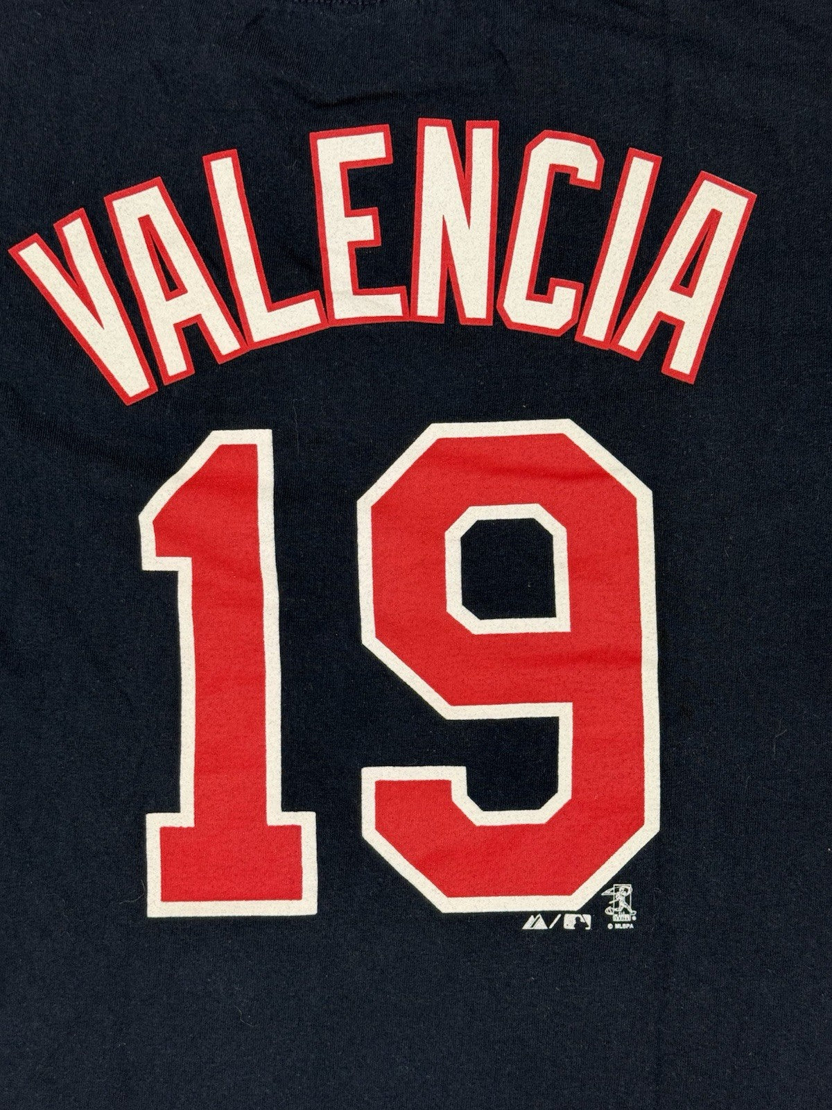 Retro Majestic Apparel MLB Dark Blue Minnesota Twins Baseball Printed T-Shirt Size Small, Spellout Logo, #19 Valencia Printed Back, Circa 2010's, American Sports, USA Sports