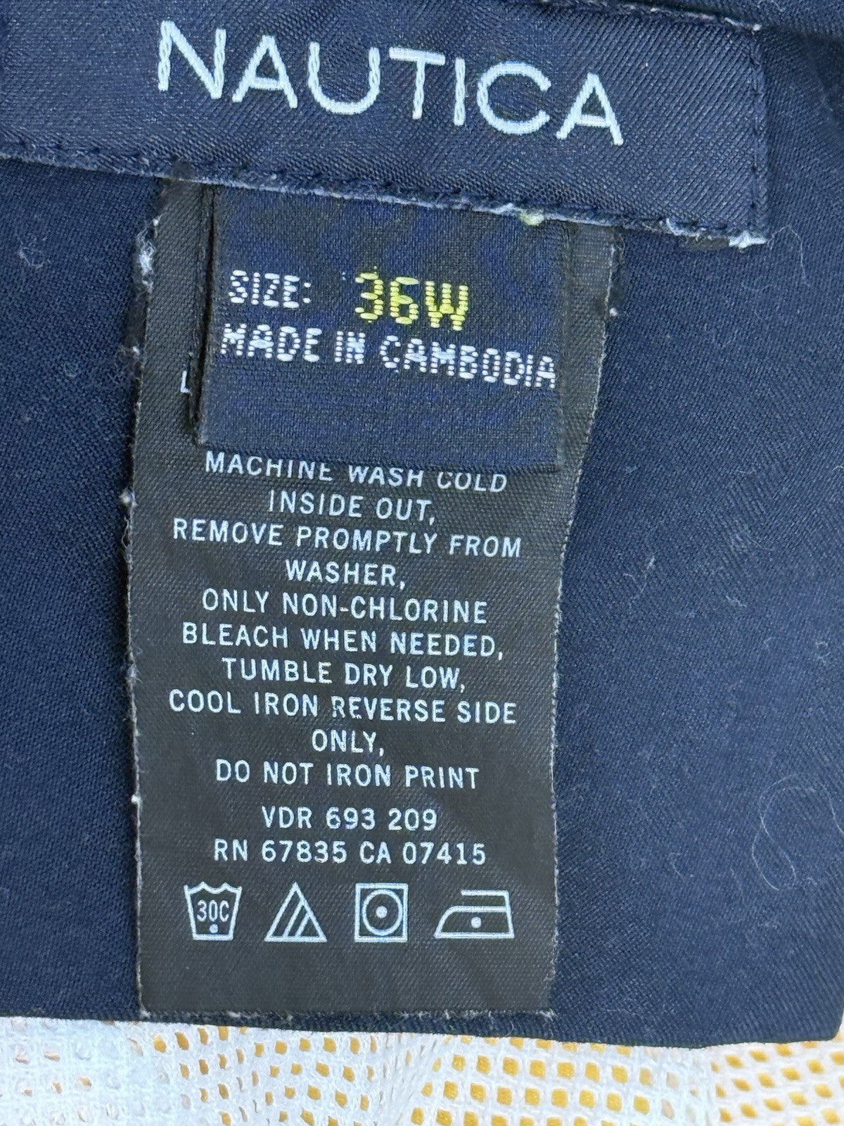 Nautica Retro Bright Yellow Swim Trunks Shorts, Printed Logo, Velcro Pocket, Mesh Web Lining, Velcro and Drawstring Closure, Stylish Retro Swimwear