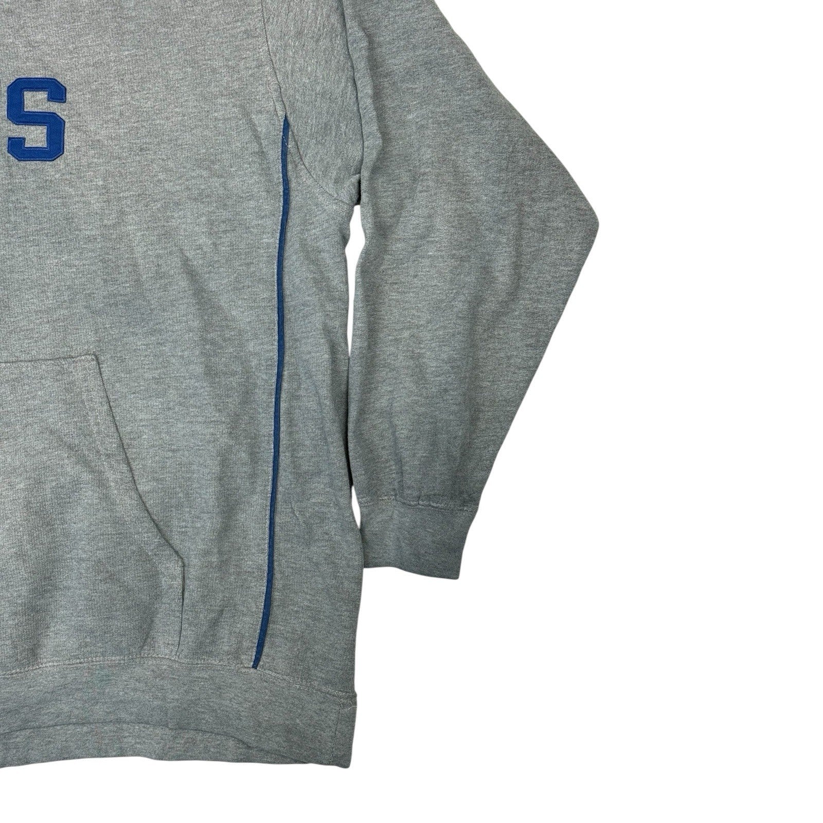 NFL Grey Indianapolis Colts American Football Embroidered Pullover Hoodie Sweatshirt, Blue Contrast Trim, Big Spellout Logo, Drawstring Hood, Pocket, No Size Tag Please Check Measurements