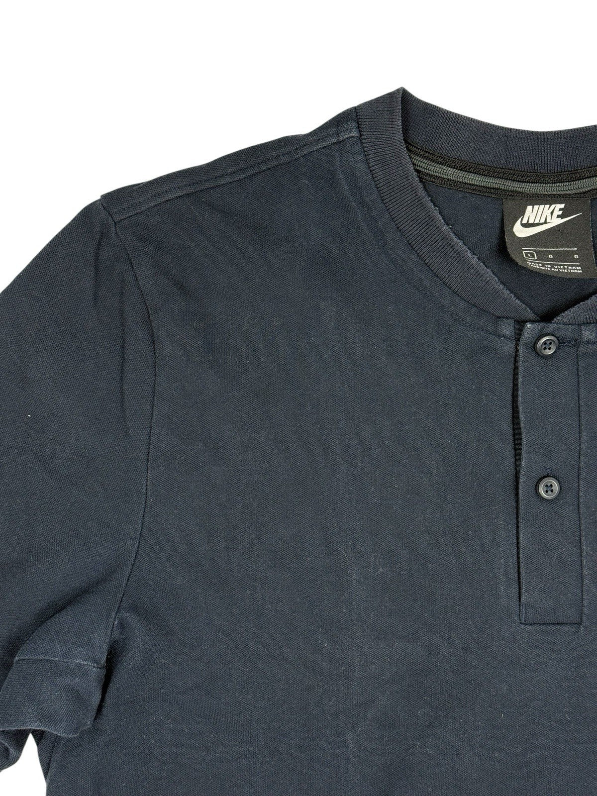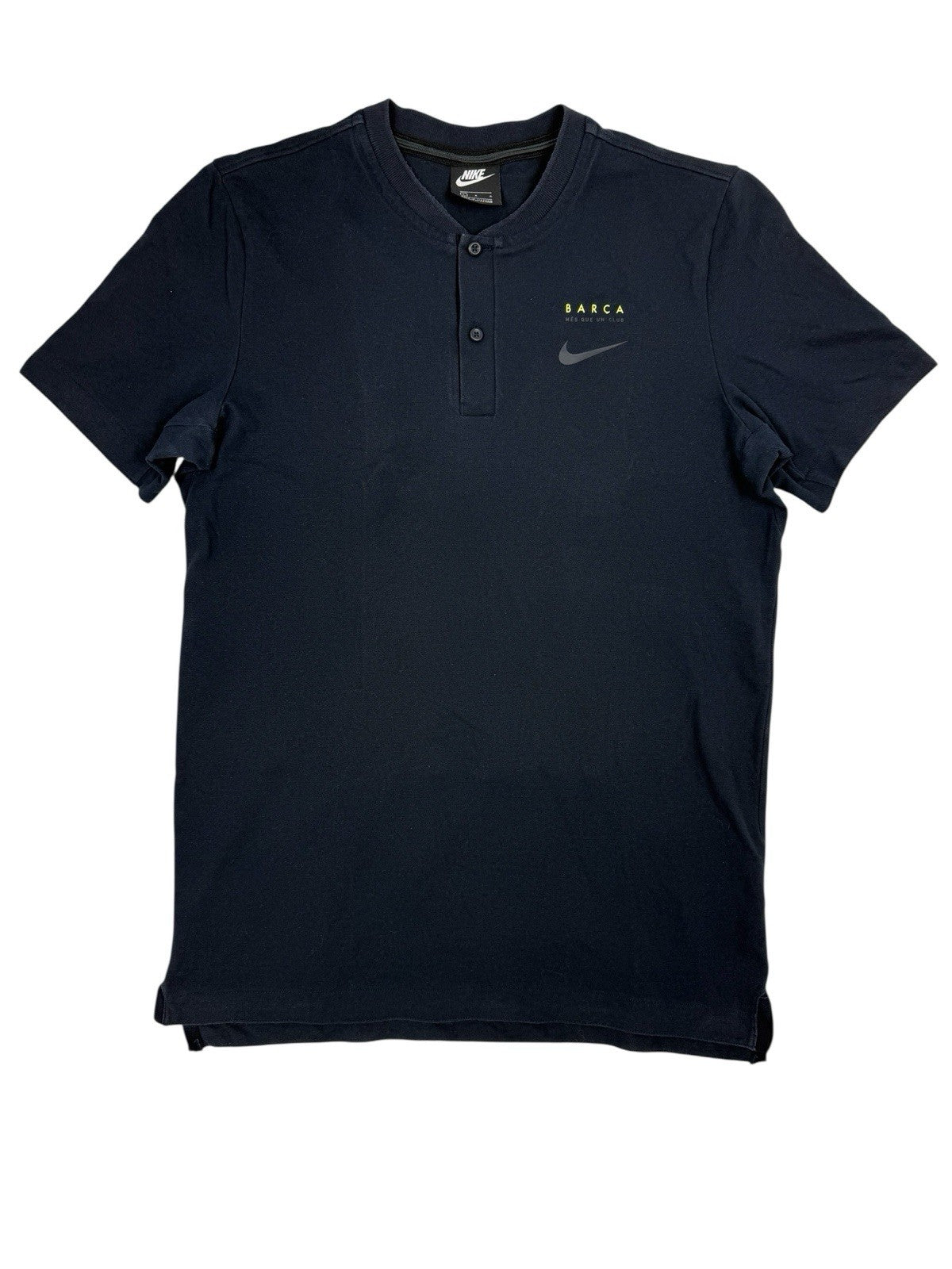 Nike Barca Barcelona FC Dark Blue Button Polo T-Shirt Top, Mock Collar, Printed Logo
