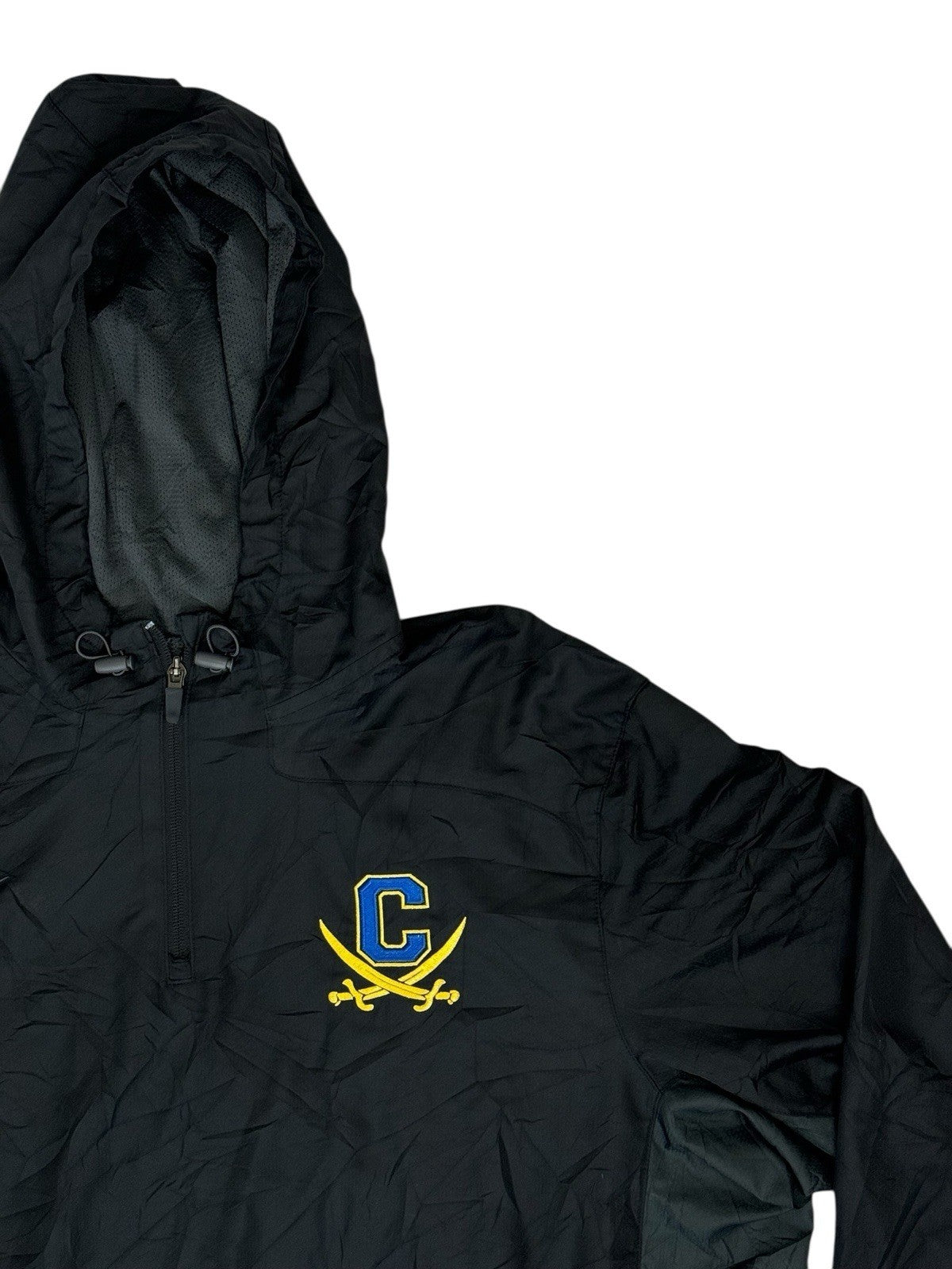 Nike Black Quarter 1/4 Zip Pullover Hooded Jacket Jumper, 100% Polyester, Zipped Pockets, Adjustable Hood and Waist, Velcro Sleeve Cuff, Vented Back, Embroidered Logo, Embroidered Sports Team Logo, American Sports Cyprus High School (Utah), Unique Americana