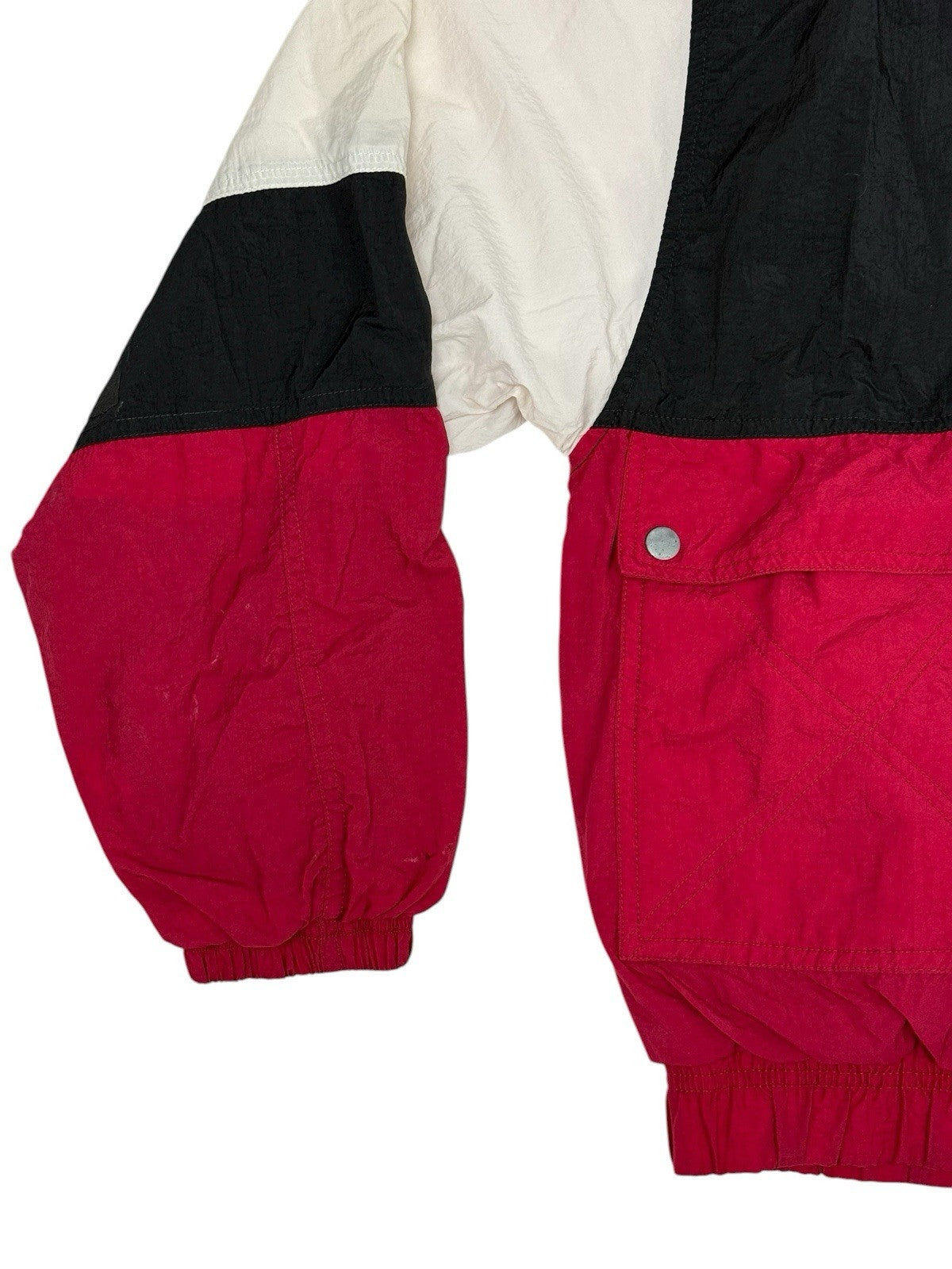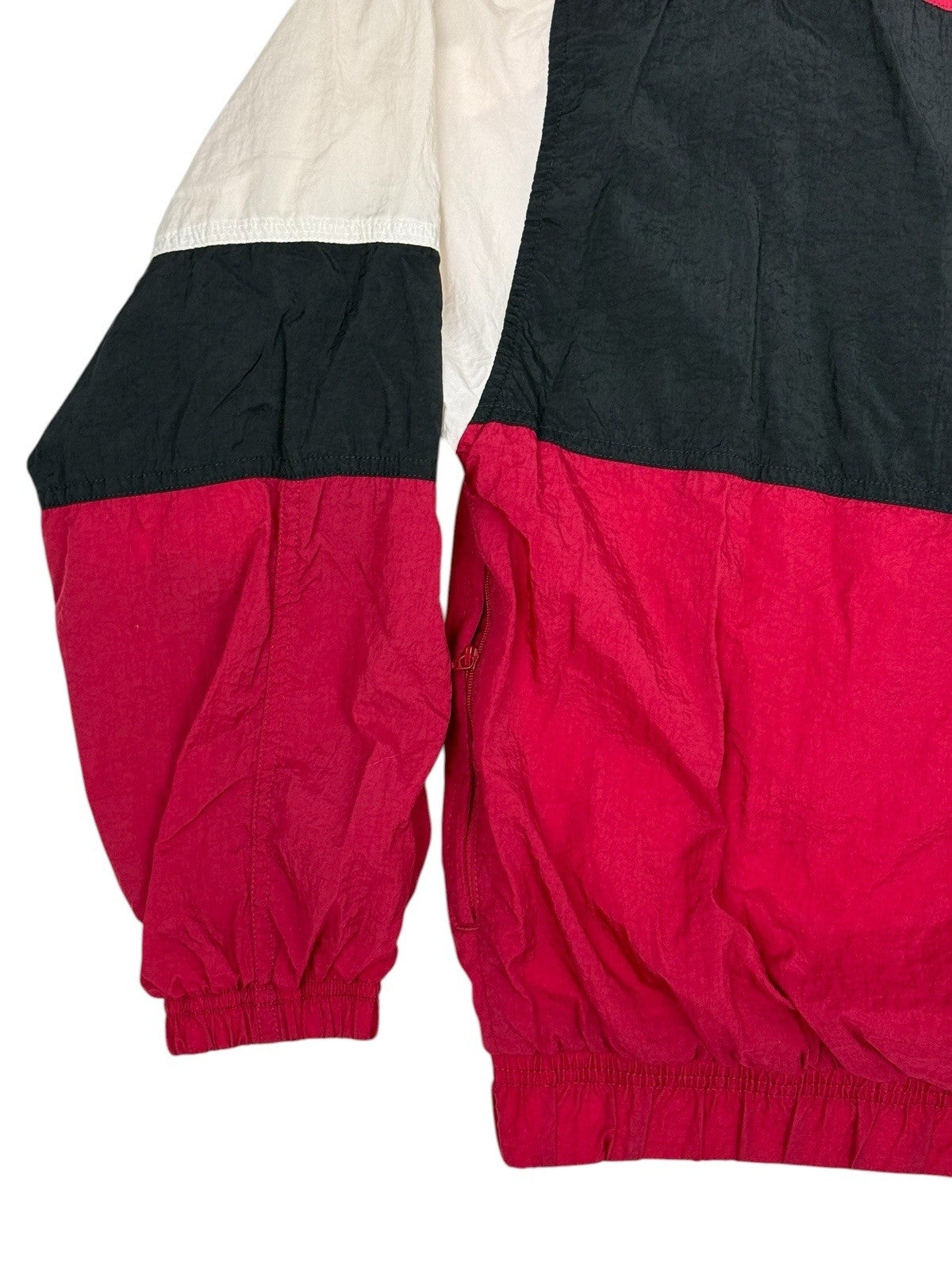 Nike Retro Multicoloured Black/Red/White Zip Through Track Jacket Size Medium (10/12), Embroidered Logo, Zipped and Snap Closure Pockets, Elastic Waist Circa '04, Y2K Fashion