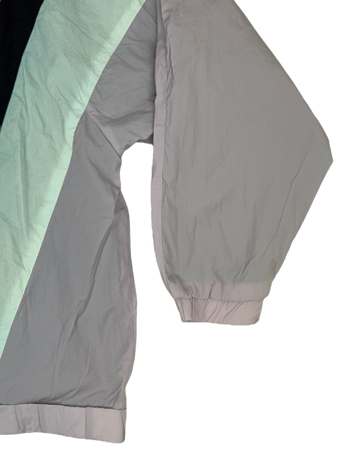 Pull and Bear Blue Zip Through Track Jacket Windbreaker, Women's Size Medium, Contrast Trim, Pockets, Embroidered Logo, Fabric Lined, Elastic Waist and Cuffs