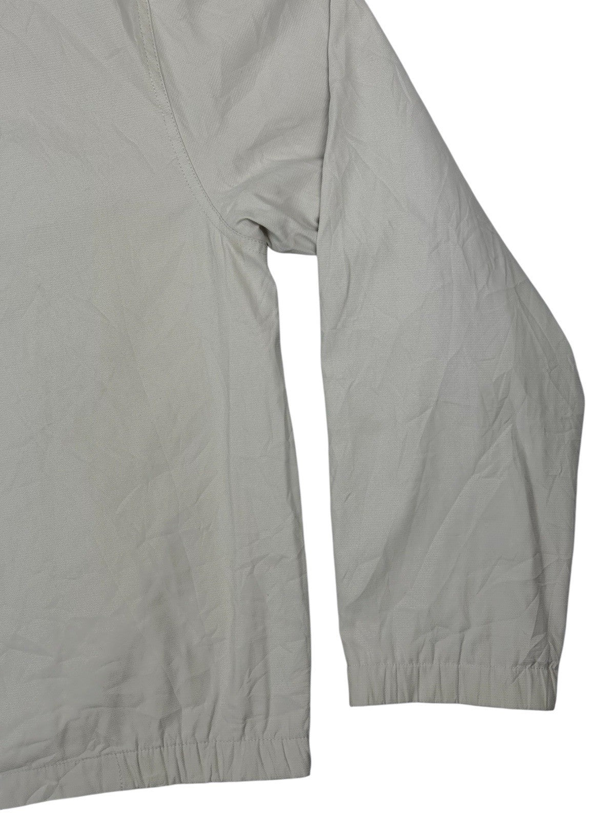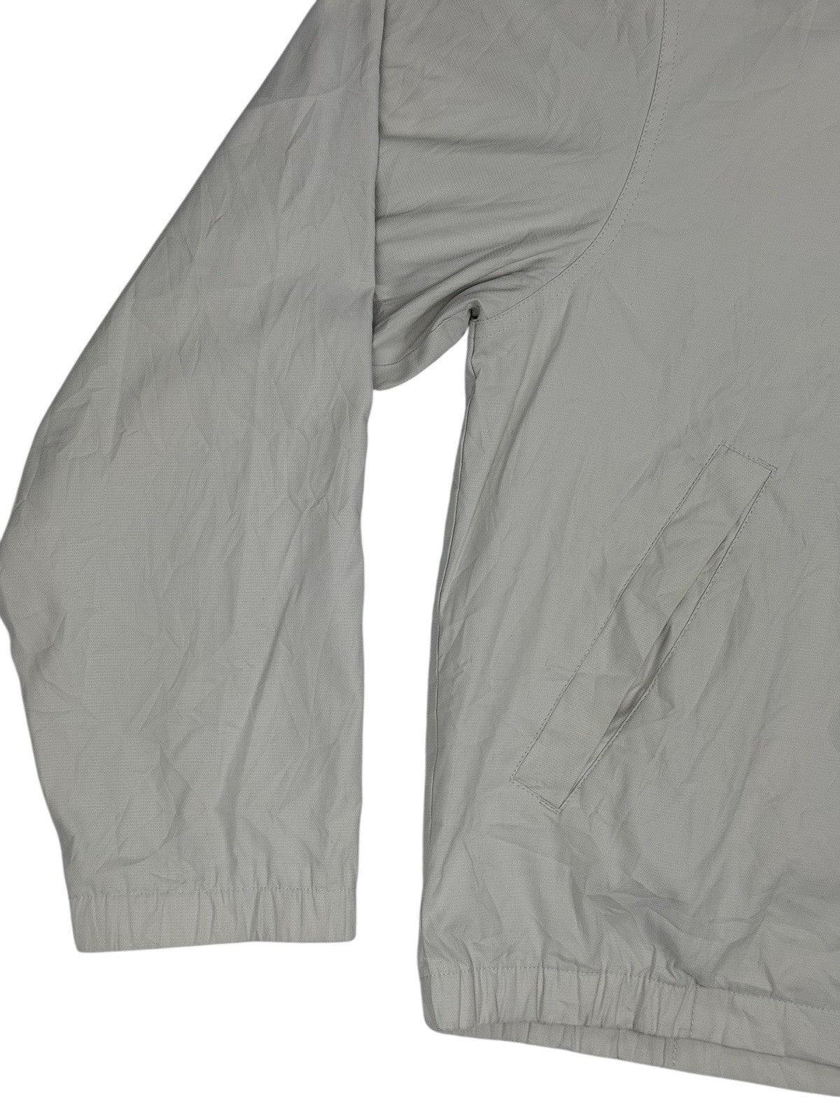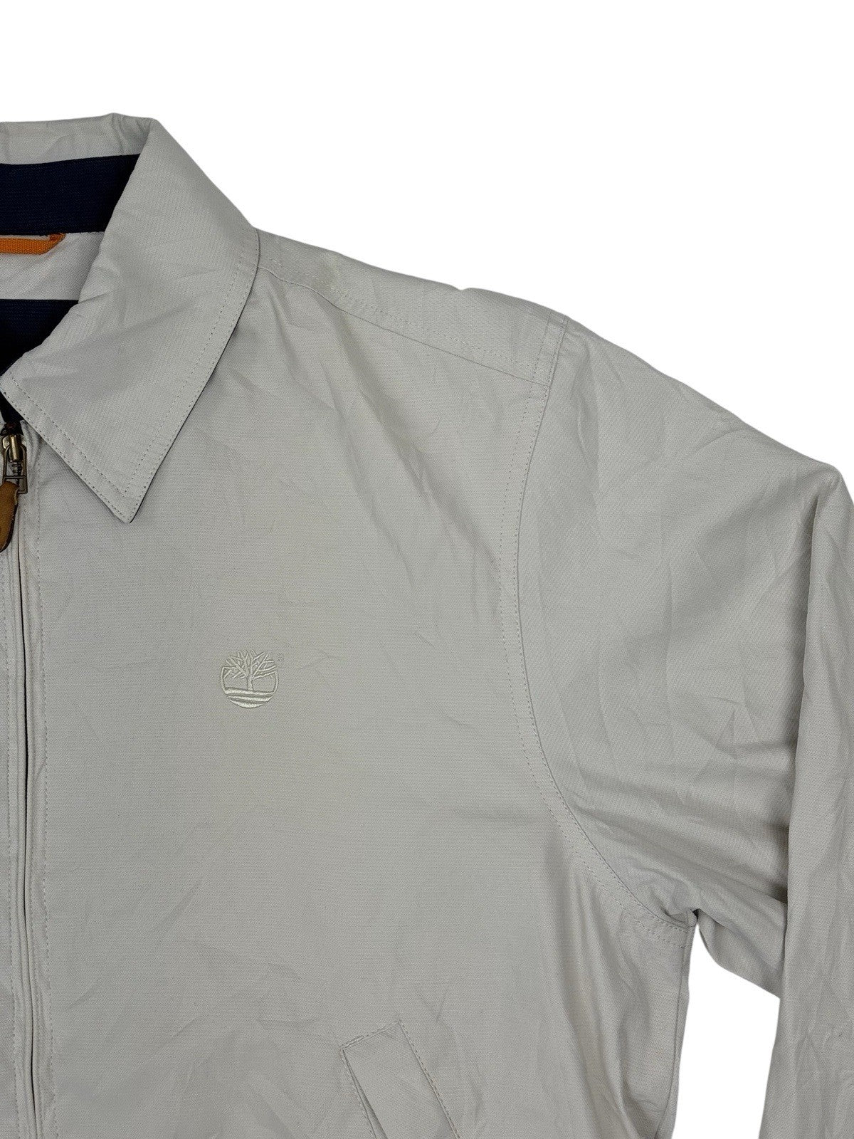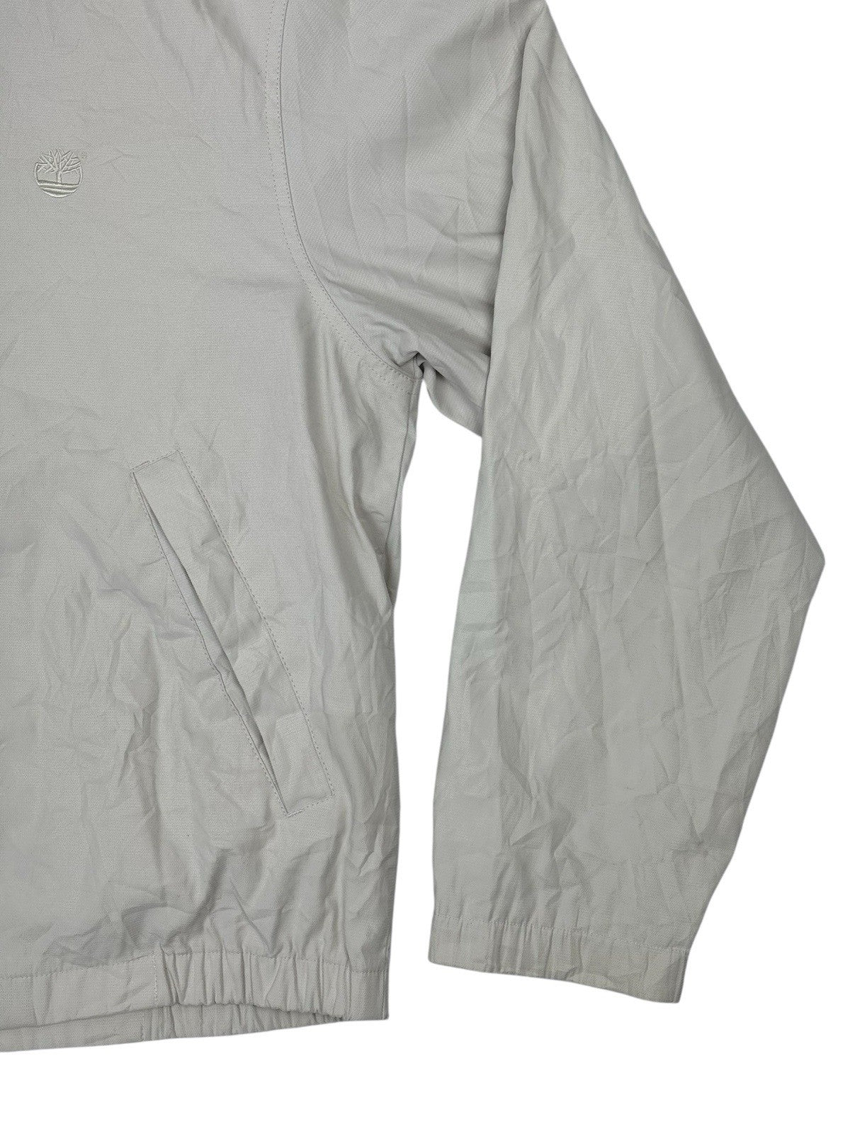 Vintage Timberland Weathergear Light Grey (Off White) Stone Collared Zip Jacket Size Small, Embroidered Logo, Lined Sleeve, Pockets, Circa 2004, 00's Y2K Fashion