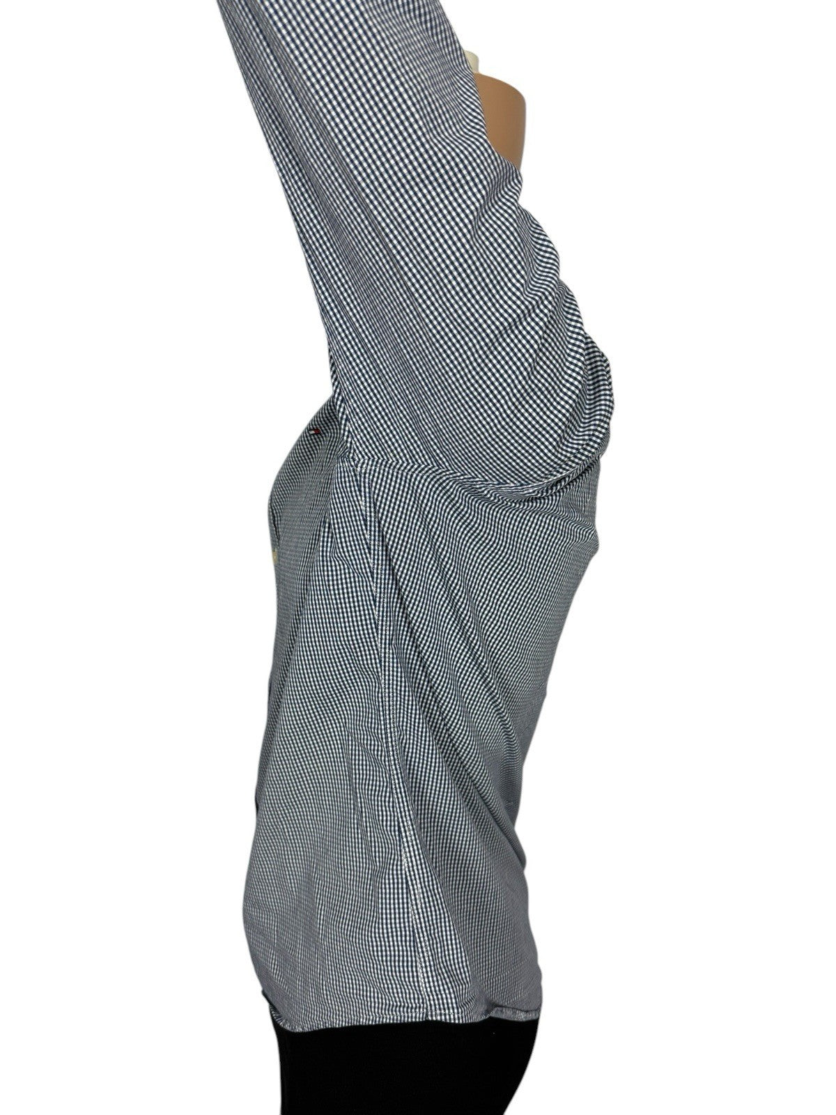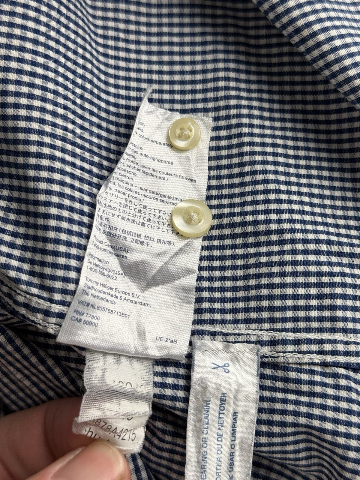 Tommy Hilfiger Blue and White Checked Patterned Long Sleeve Button Up Collared Shirt, Size XS, Embroidered Logo, Custom Fit