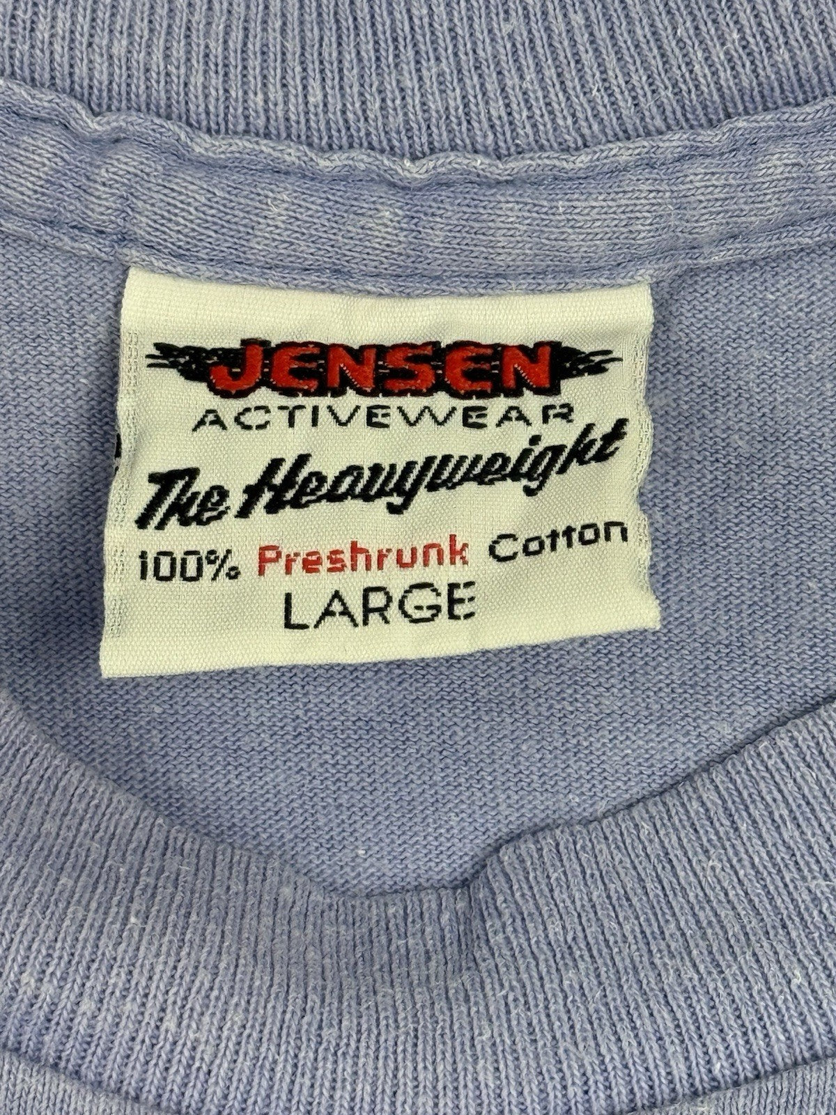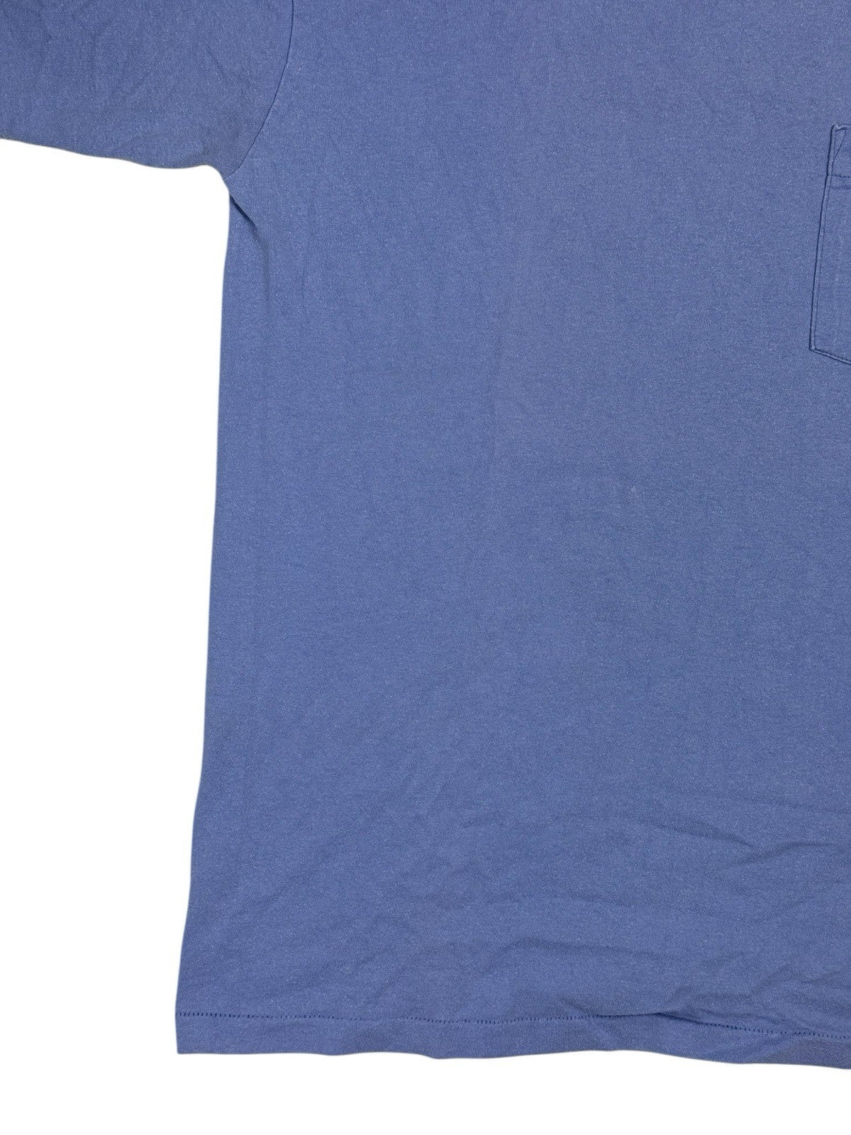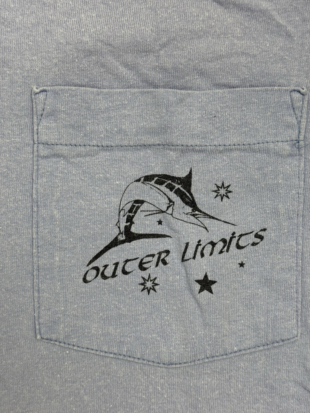Vintage Pale Purple (Lilac) Big Print Sports Fishing T-Shirt Size Large, Retro 90's Style Unique Clothing, Chest Pocket with 'Outer Limits' Fishing Logo, Big Back Print