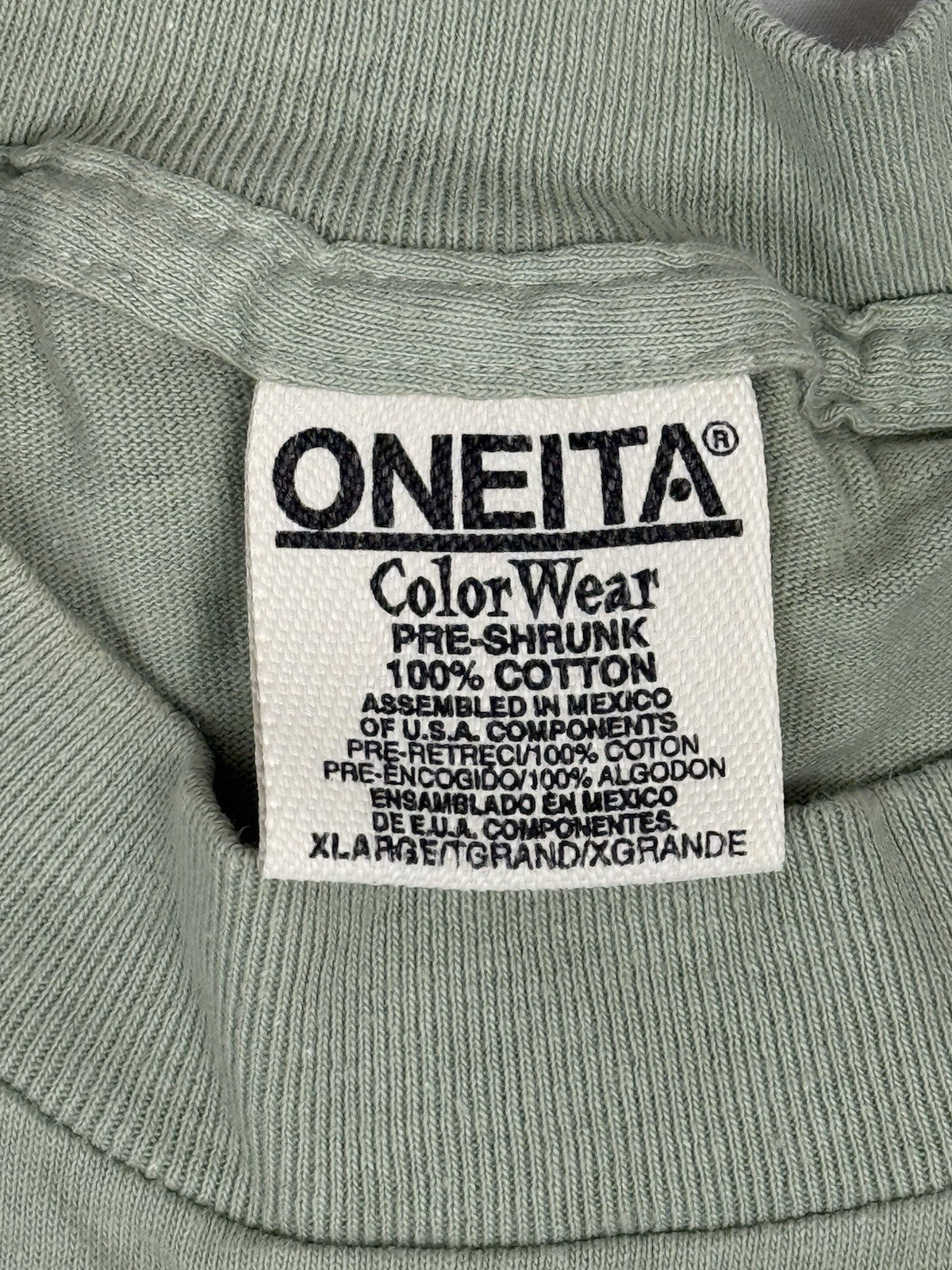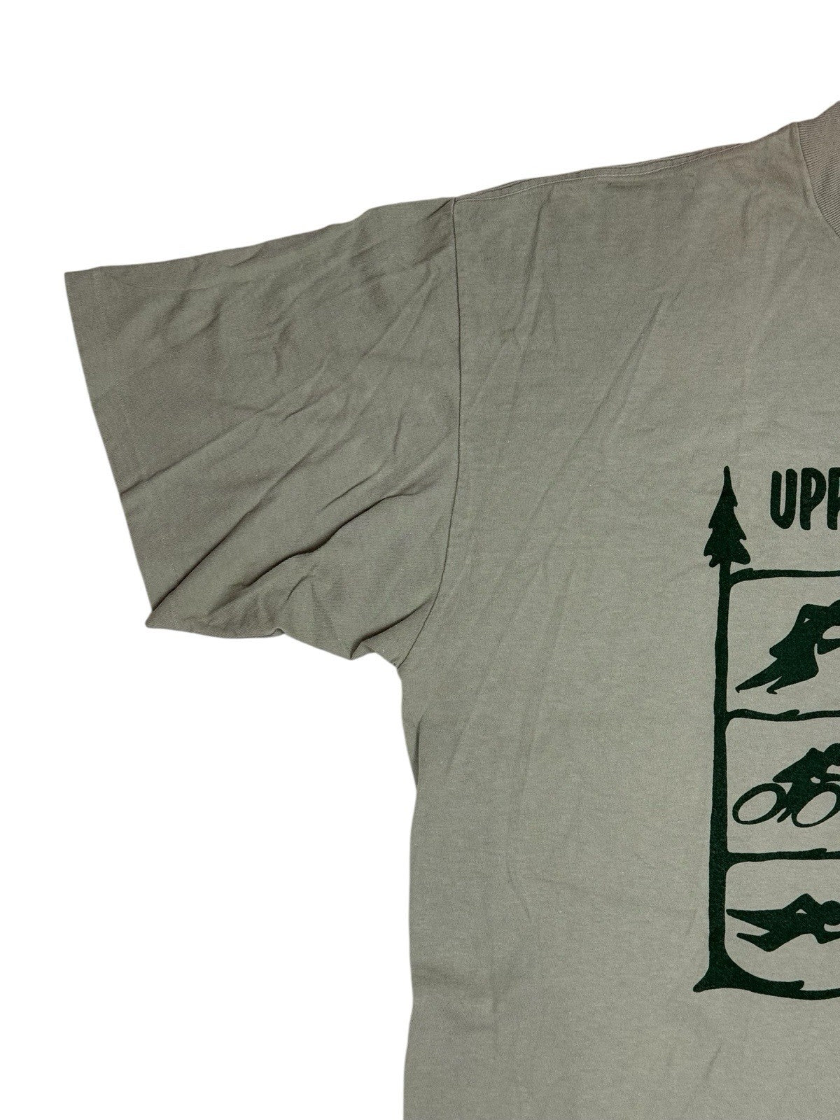 Vintage ONEITA Green Iron Mountain Michigan Triathlon Upper Peninsula 1997 T-Shirt Top Size XL, Big Graphic Print on Front and Back, Retro Unique Americana Clothing